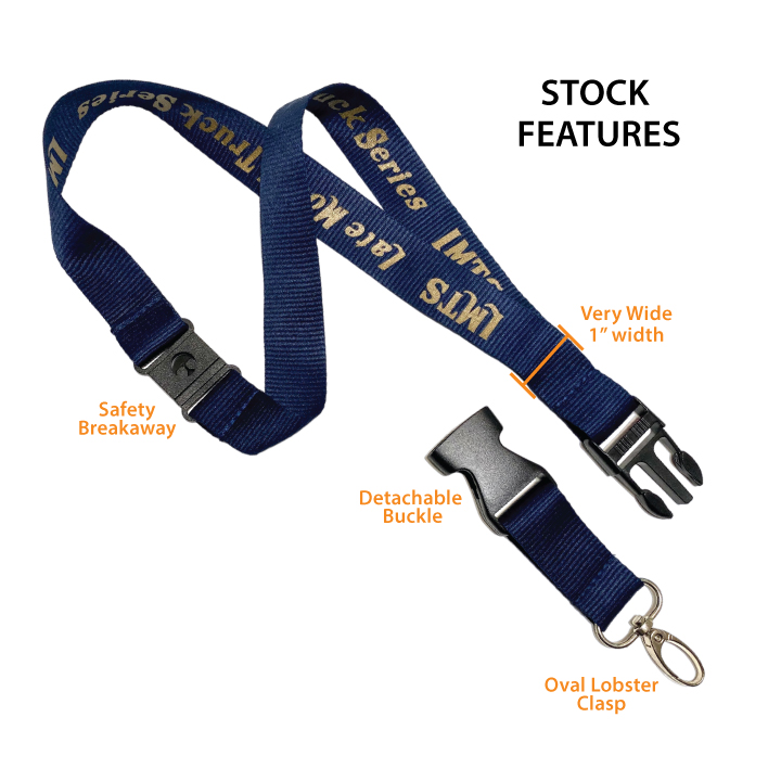 1″ Wide Custom Printed Lanyard with Oval Lobster Clip, Detachable Buckle and Safety Breakaway
