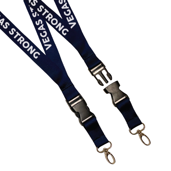 Features 1 inch wide custom printed, with safety breakaway connector, detachable buckle fob, and the versatile oval lobster clip. The lobster clip will work on anything.