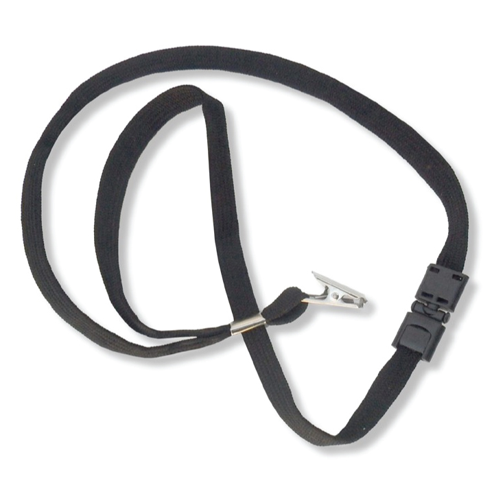 These lanyards have a breakaway connector in the back of the neck that is a safety feature designed to break free when it is pulled on hard enough or gets caught in machinery. Sometimes referred to as “quick release lanyards”