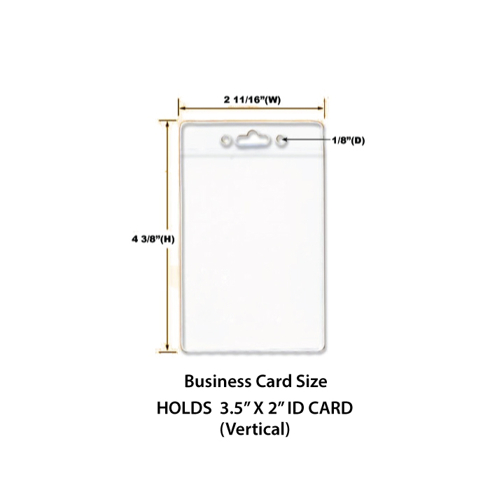 Clear acrylic badge holders that hold a credit card size id (2″ x 3 1/2″). This is one of our most popular vertical badge holders.Holds a small ID card, business card size. Size of card is 2 in x 3 1/2 inch or 3.5×2 inch.