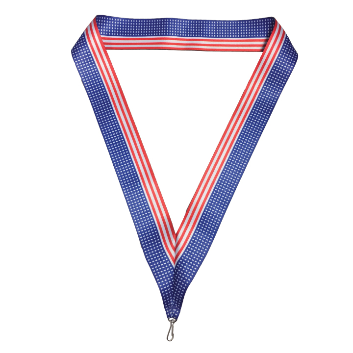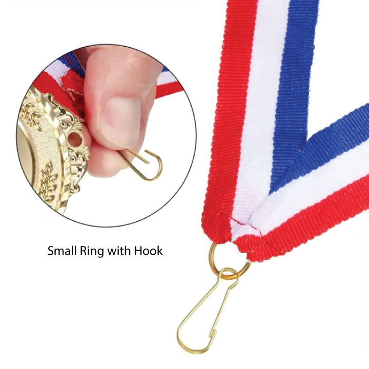 Available in two or three colors and 2 different widths. Comes with a small jumper hook for hanging badges, awards, medals, or attachments.