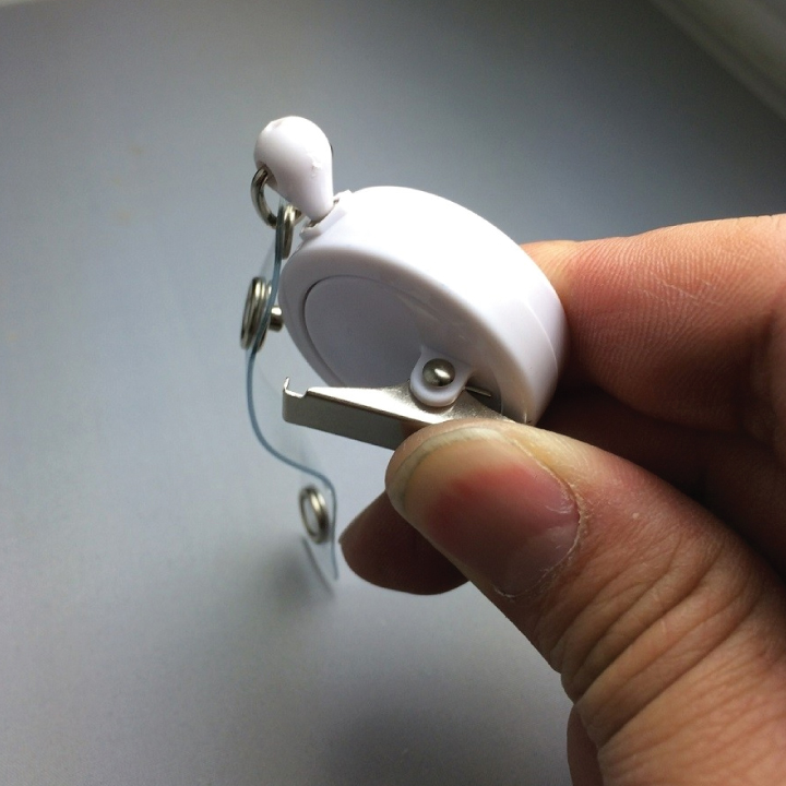 Alligator badge reels custom printed with your imprint or design. Full in-house direct printing in the USA means factory direct prices for you. These printed retractable badge wheels can be direct imprinted or be customized with a full-color epoxy dome. Features a rotating alligator ID clip in the back.